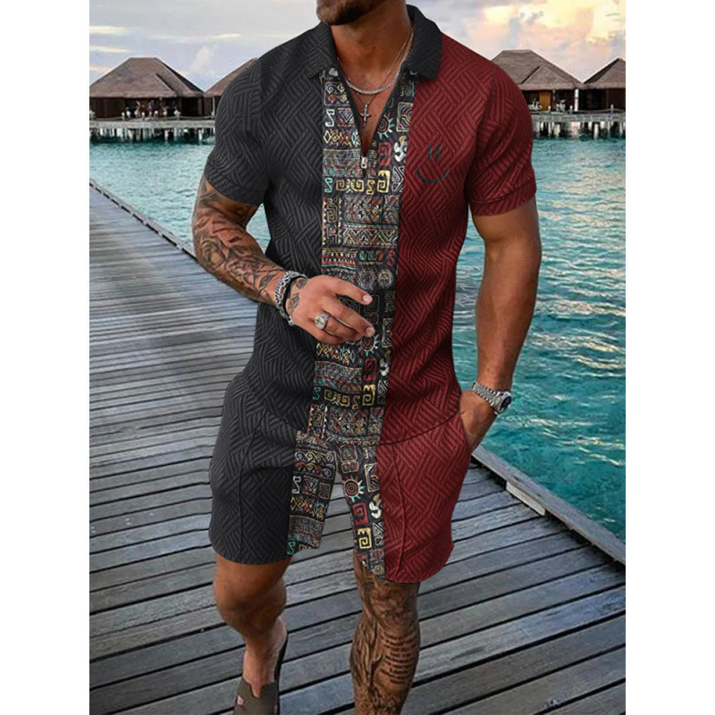 Trendy Lapel Pullover Shirt and Shorts Set for Summer